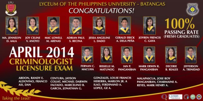 April 2014 Criminologists Licensure Exam Passers