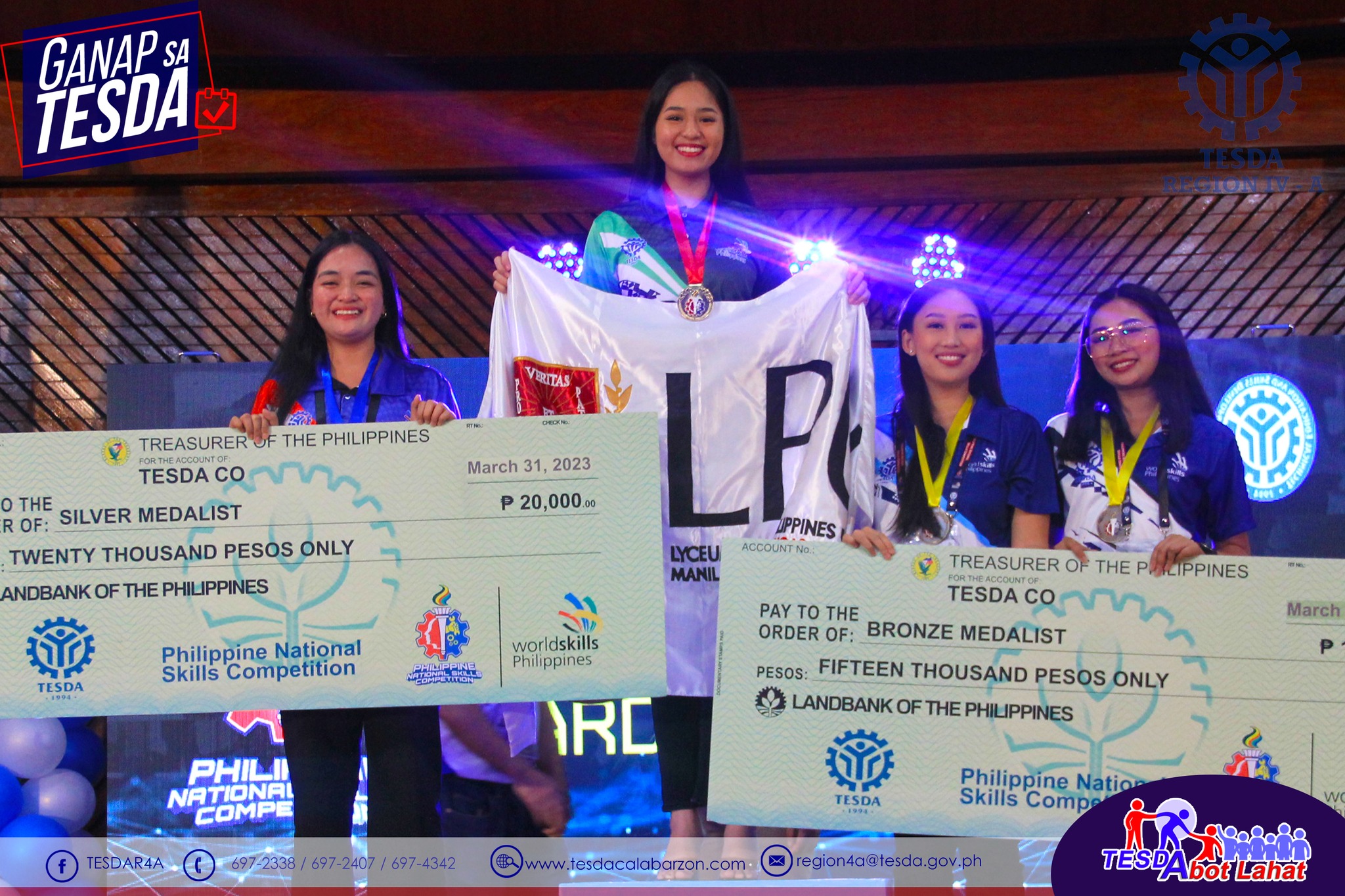 Congratulations to lyceans Gwyneth Nicole Abarquez for winning Gold Medal in Restaurant Services and Rochelle May Cariño for winning the Bronze Medal in IT Software Solution for Business at the 2023 Philippine National Skills Competition, held March 27-31, 2023.