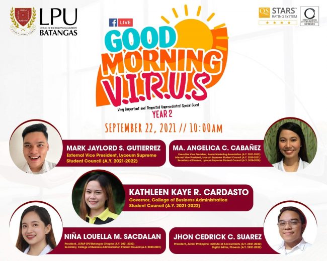 Views: 0 For Good Morning Virus’ last episode for September, we will be featuring a mix of student leaders and officers from the Lyceum International Maritime Academy. A snappy salute from them will make sure that they are all aboard their respective orgs ready to steer in the right direction. Don’t miss this episode on…